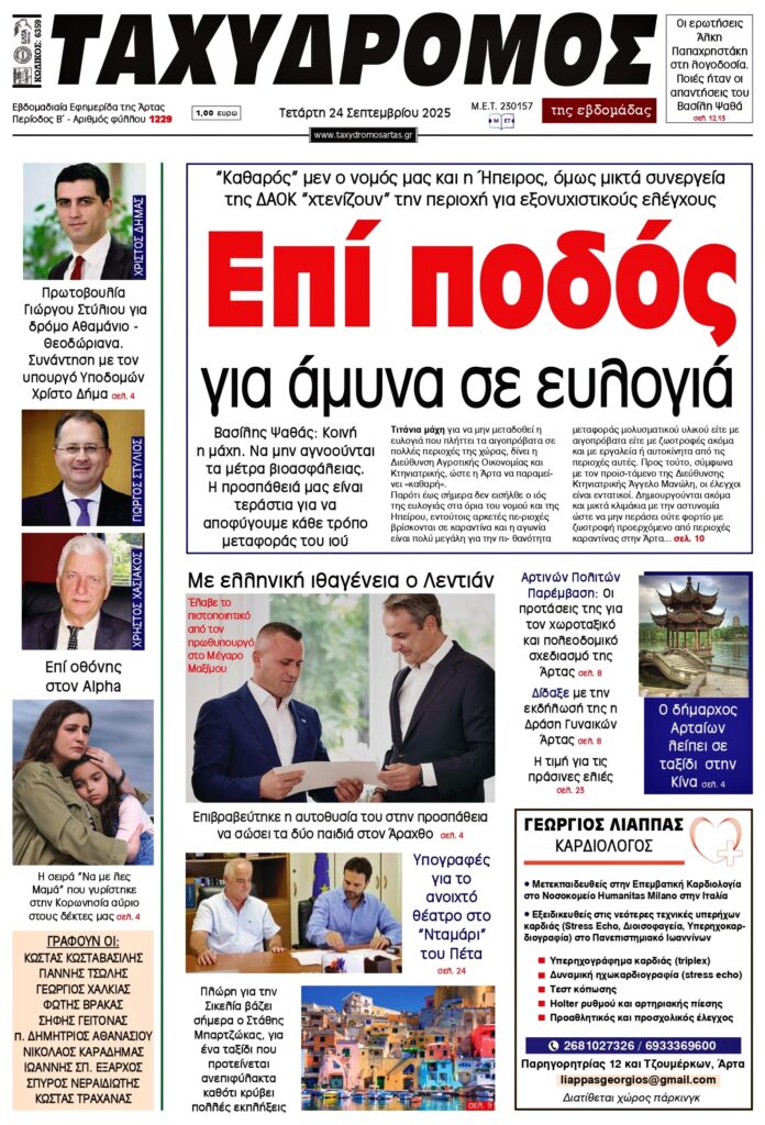 Διαφημιστείτε στην ηλεκτρονική σελίδα του ΤΑΧΥΔΡΟΜΟΥ Άρτας. Τηλέφωνο: 2681077302 - E-mail: taxydrom@gmail.com