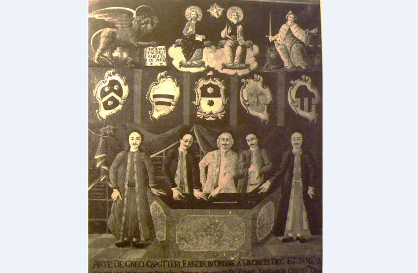 Για την συντεχνία ο Χρήστος Ζαμπακόλας γράφει τα παρακάτω: «Όλα τα μέλη της συντεχνίας προέρχονταν από την Ήπειρο και ήταν χριστιανοί ορθόδοξοι. Η κοινή εθνική προέλευση διευκρινίζεται και από την ονομασία της συντεχνίας που ήταν “των Ελλήνων” – αναφορά τόσο στην καταγωγή όσο και στο ορθόδοξο δόγμα. Άλλωστε, και στο άρθρο 5 της Mariegola (το επίσημο βιβλίο του καταστατικού της συντεχνίας), διατυπώνεται με σαφήνεια ότι κάθε Έλληνας cappomaestro μπορούσε να προσλάβει μαθητευό- μενους και τεχνίτες μόνο από τη nazione greca της Βενετίας. Συνεπώς, επρόκειτο για μια συντεχνία, τα μέλη της οποίας μοιράζονταν κοινές πολιτισμικές αναφορές, είχαν κοινή γλώσσα και συμπεριφορά και Ελληνική εθνική συνείδηση».